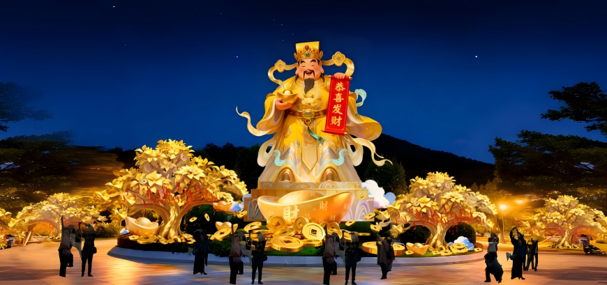 灯火起,解锁马年最具空气感的出逛新体例!“财神大道”灯组满载祈福心愿,仿佛一秒穿越回远古时代,