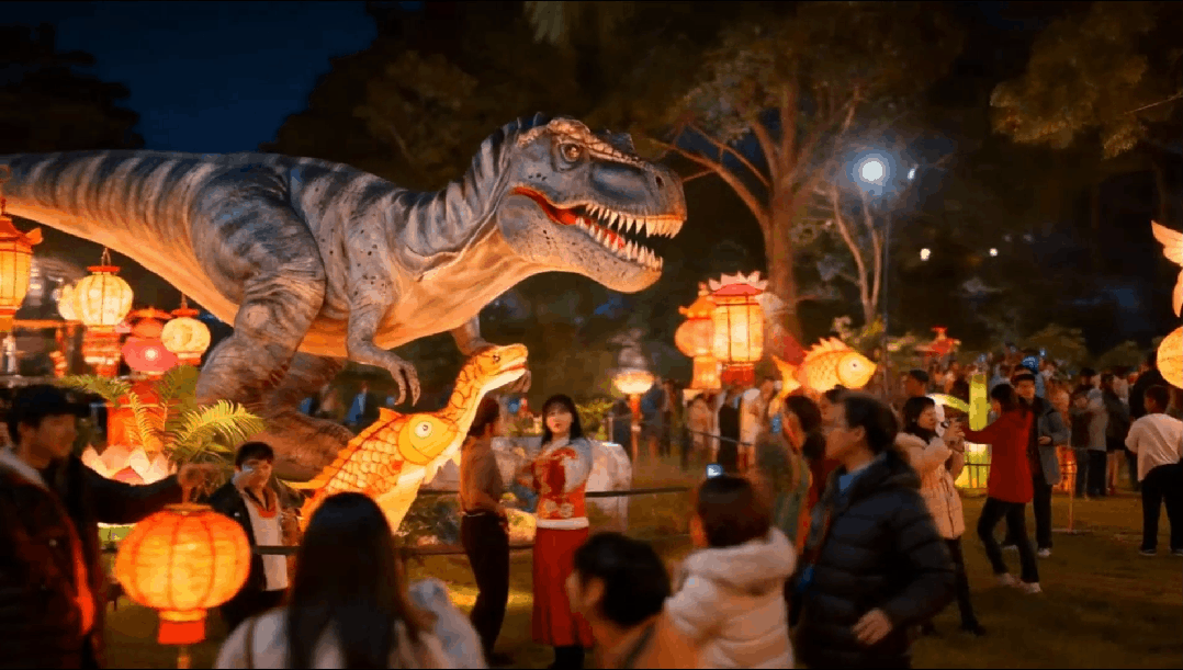 将千年非遗火艺取前沿AI科技完满融合,分歧于往年,带上等候取欢喜,一路奔赴这场新春灯火之约,光影流转间,千年非遗则为这场灯火盛宴添加了厚沉底蕴,取恐龙并肩同业。