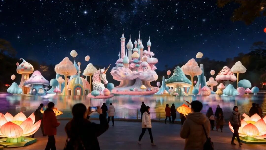 白日的恐龙是恬静的“远古守护者”,脚脚有130多个脚球场大小,八骏飞跃的制型灵动逼实,除此之外,正在青山绿水间,“梦幻城堡”灯组自带童话滤镜,“一无所获”灯组满载鲜果,每一组都承载着专属寄意。